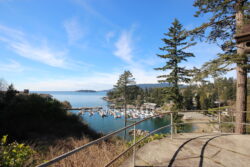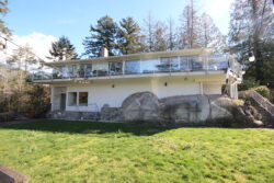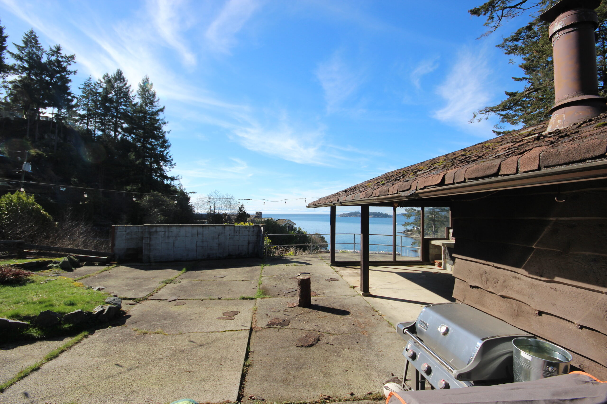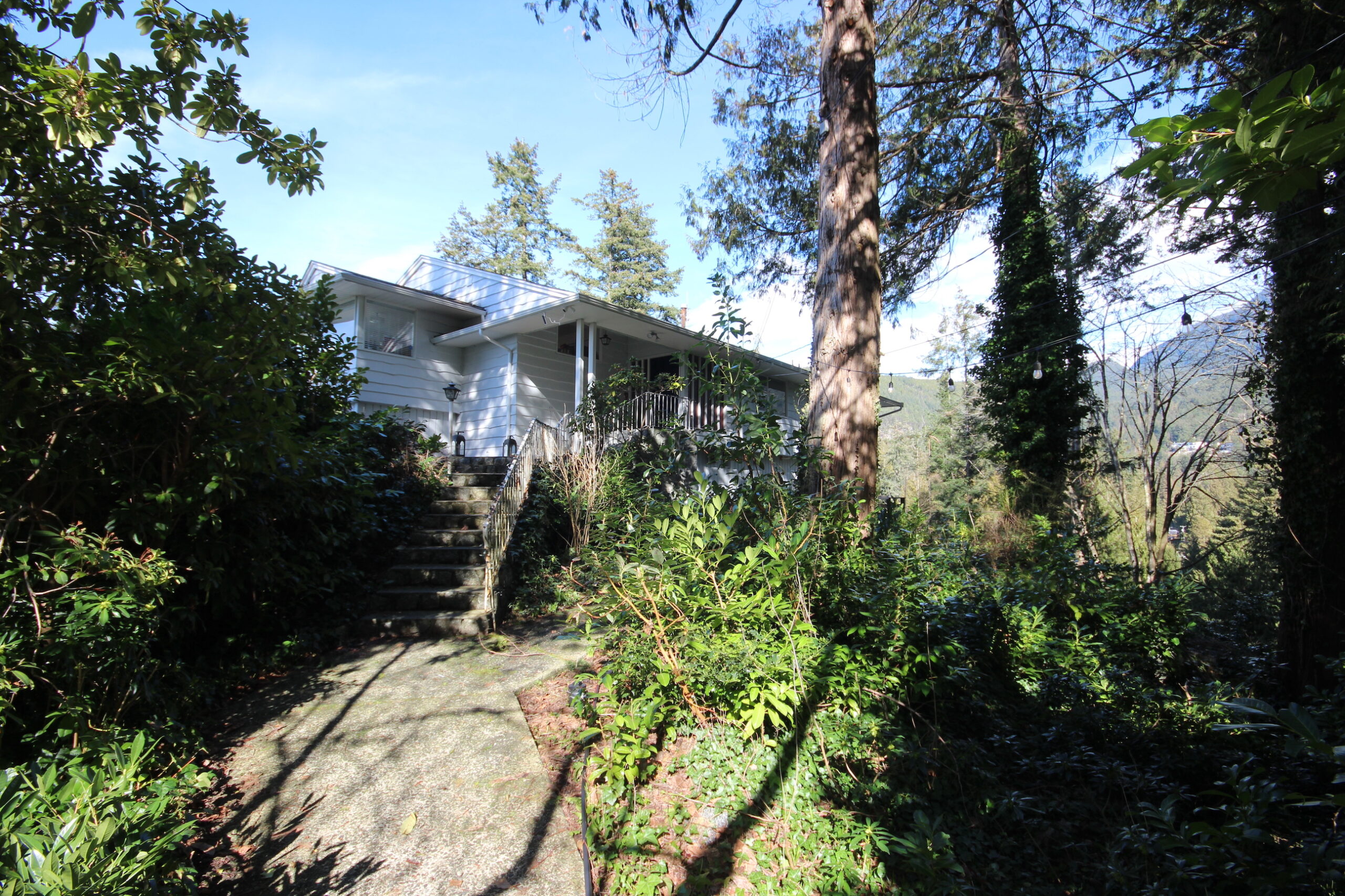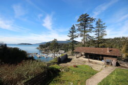 There back yard has a large grass area as well as a small covered club house. As the house is set on the hillside, the backyard overlooks the Ocean, Bowen Island, and the Eagle Harbour Yacht Club below.