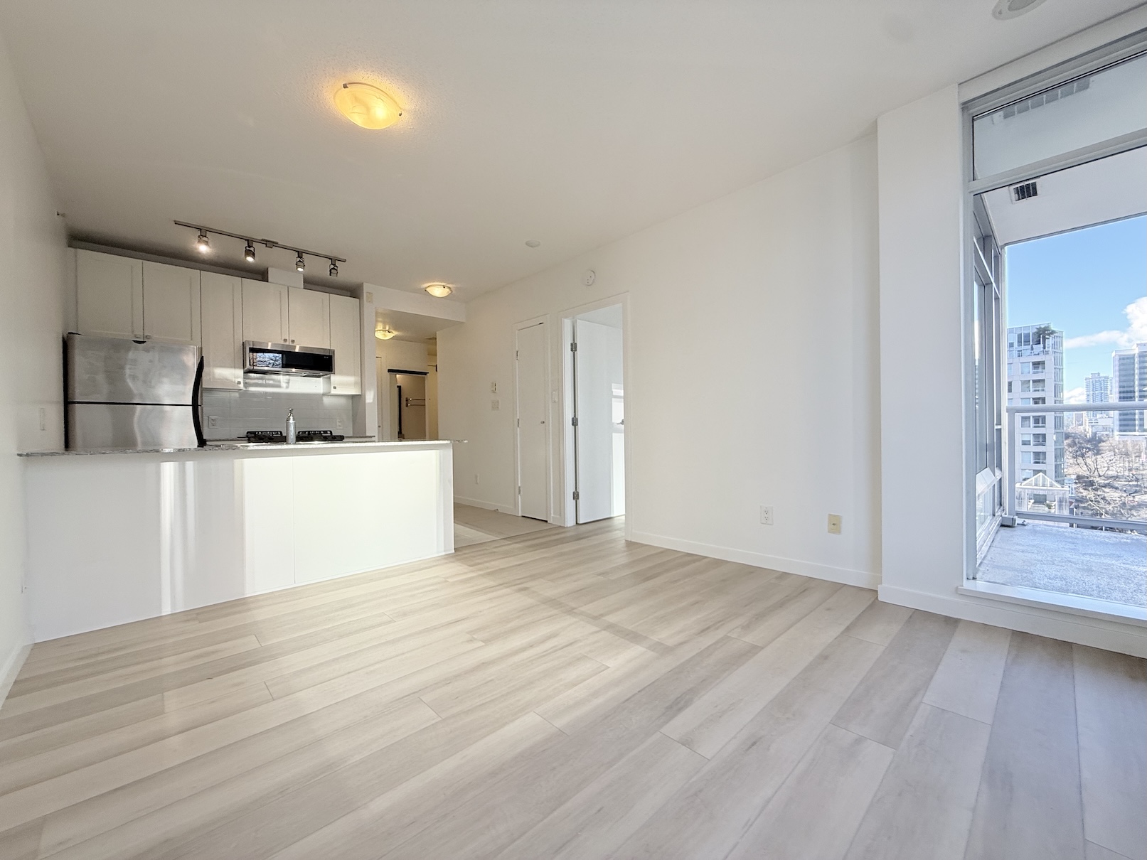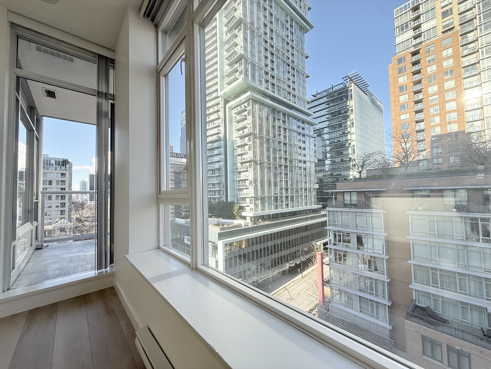 The apartment is on the 9th floor of The R&R building. The R&R is a 19 storey strata building which is located at 480 Robson Street, at the corner of Robson and Richards. This area is both vibrant and convenient, with the shops and restaurants of Robson Street just steps away, and just a short walk to Yaletown, the Downtown Business District, The Sea Wall, Rogers Arena, BC Place and The Queen Elizabeth Theatre. A large grocery store (IGA) and the Vancouver Public Library are located across the Street and the Yaletown Roundhouse Sky Train Station is just a 10 minute walk.