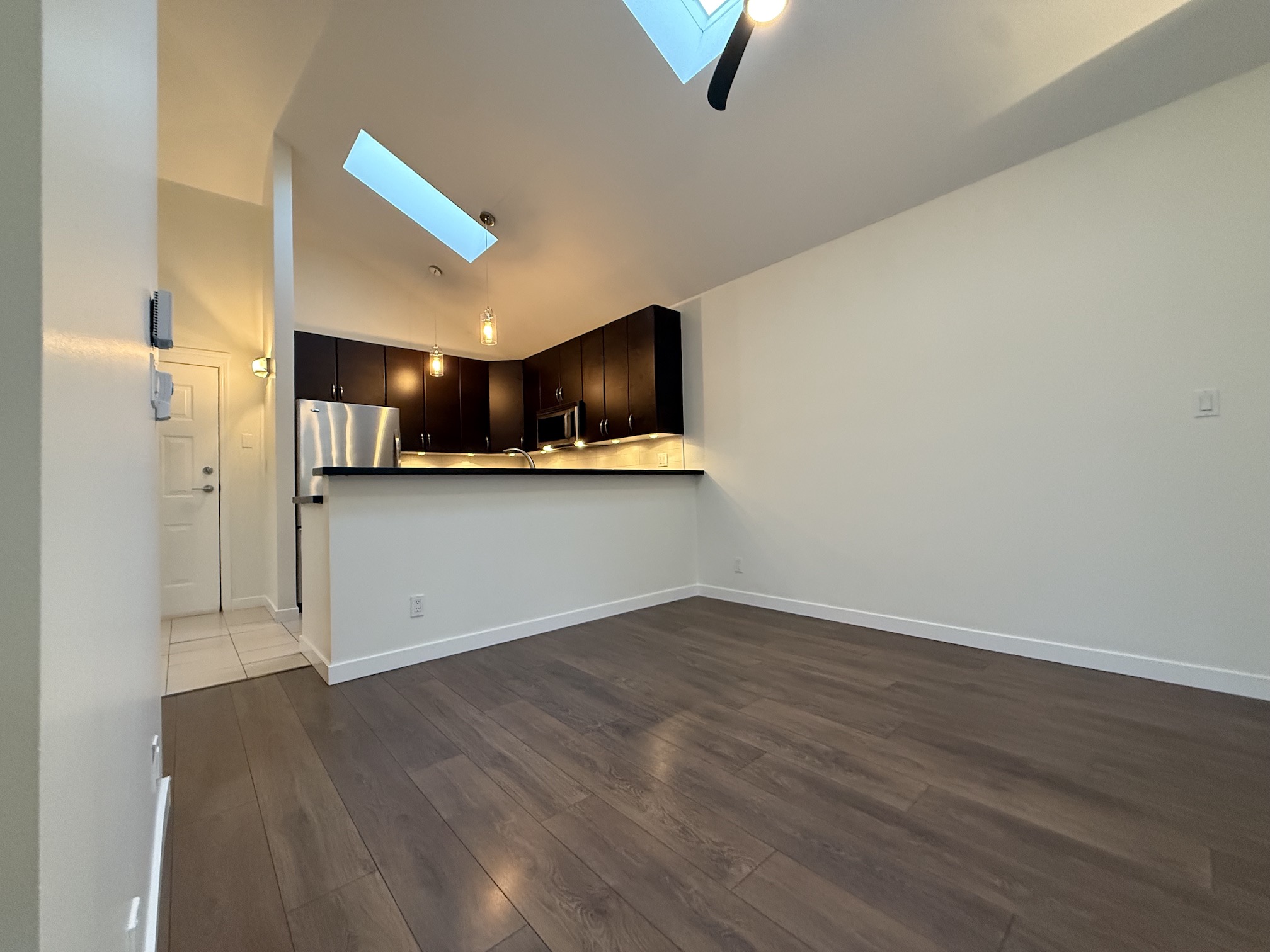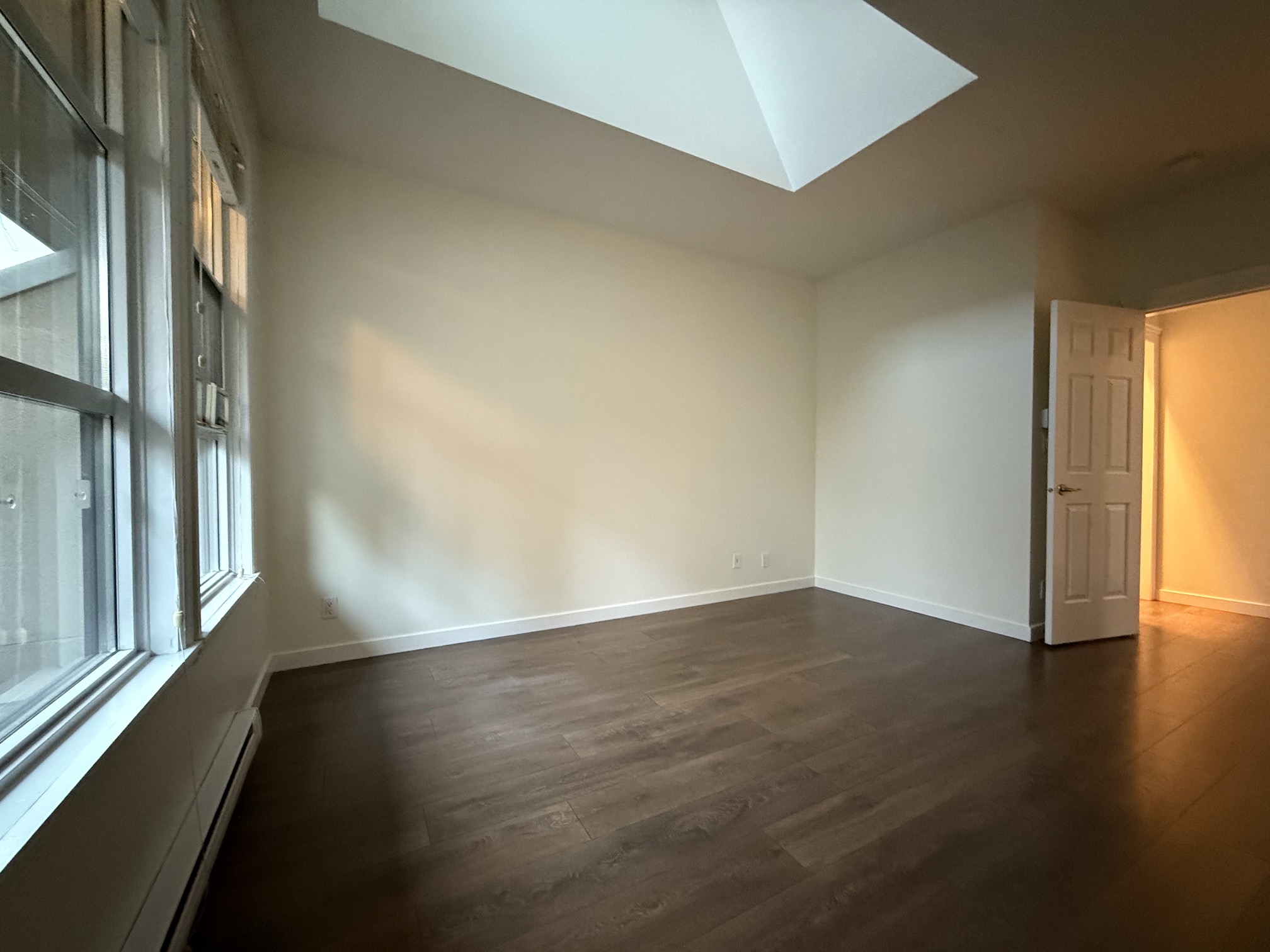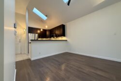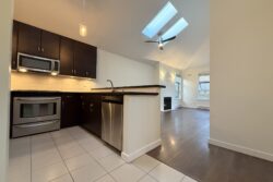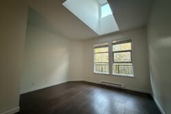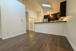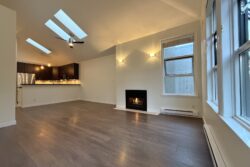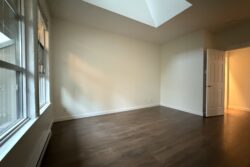 The Apartment is approx 790sqft, and is on the top (3rd) floor of the building, providing the added benefits of overheight vaulted ceilings and skylights in almost every room.