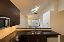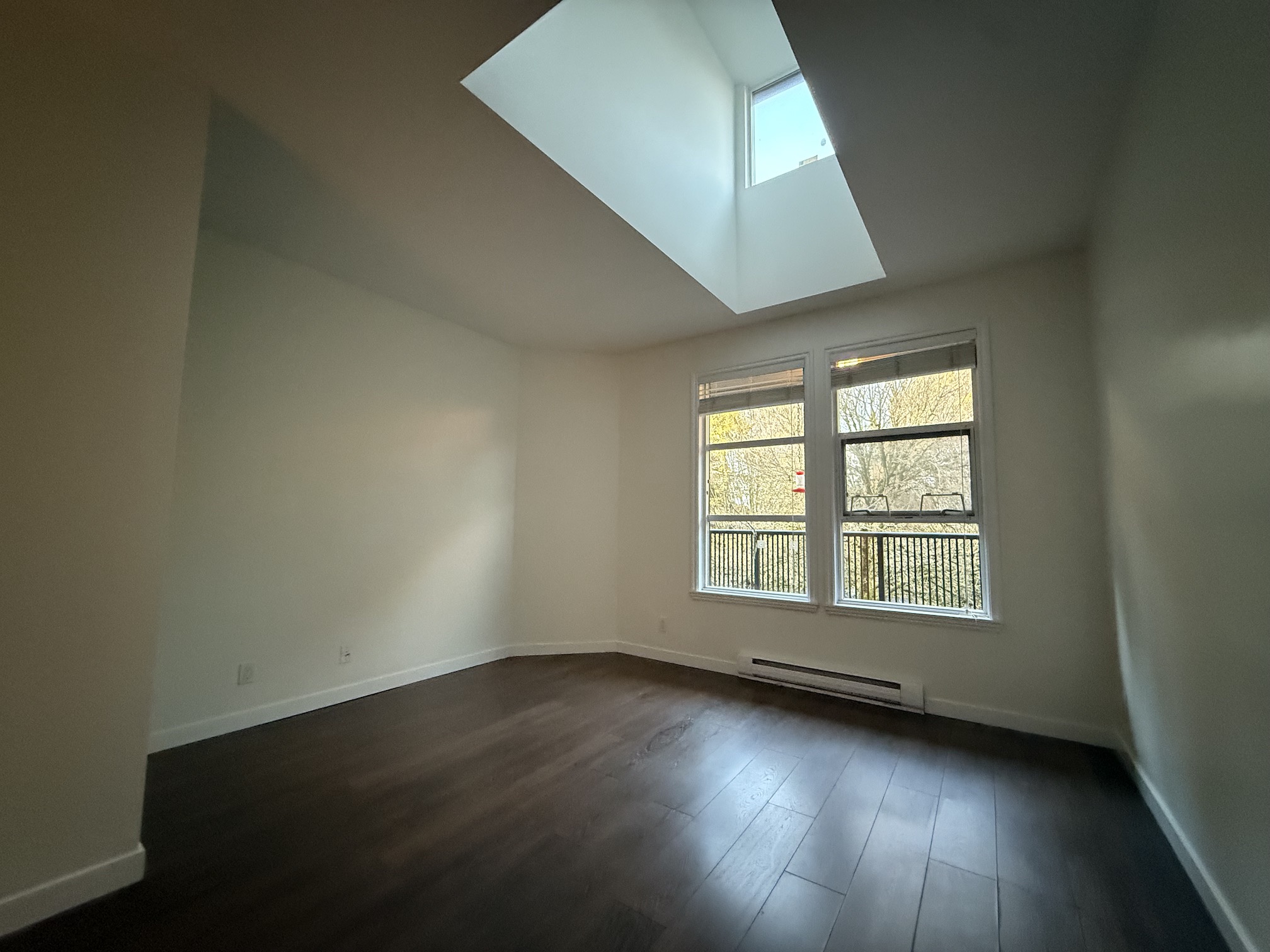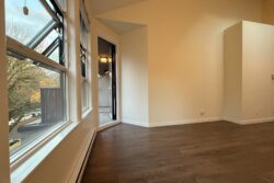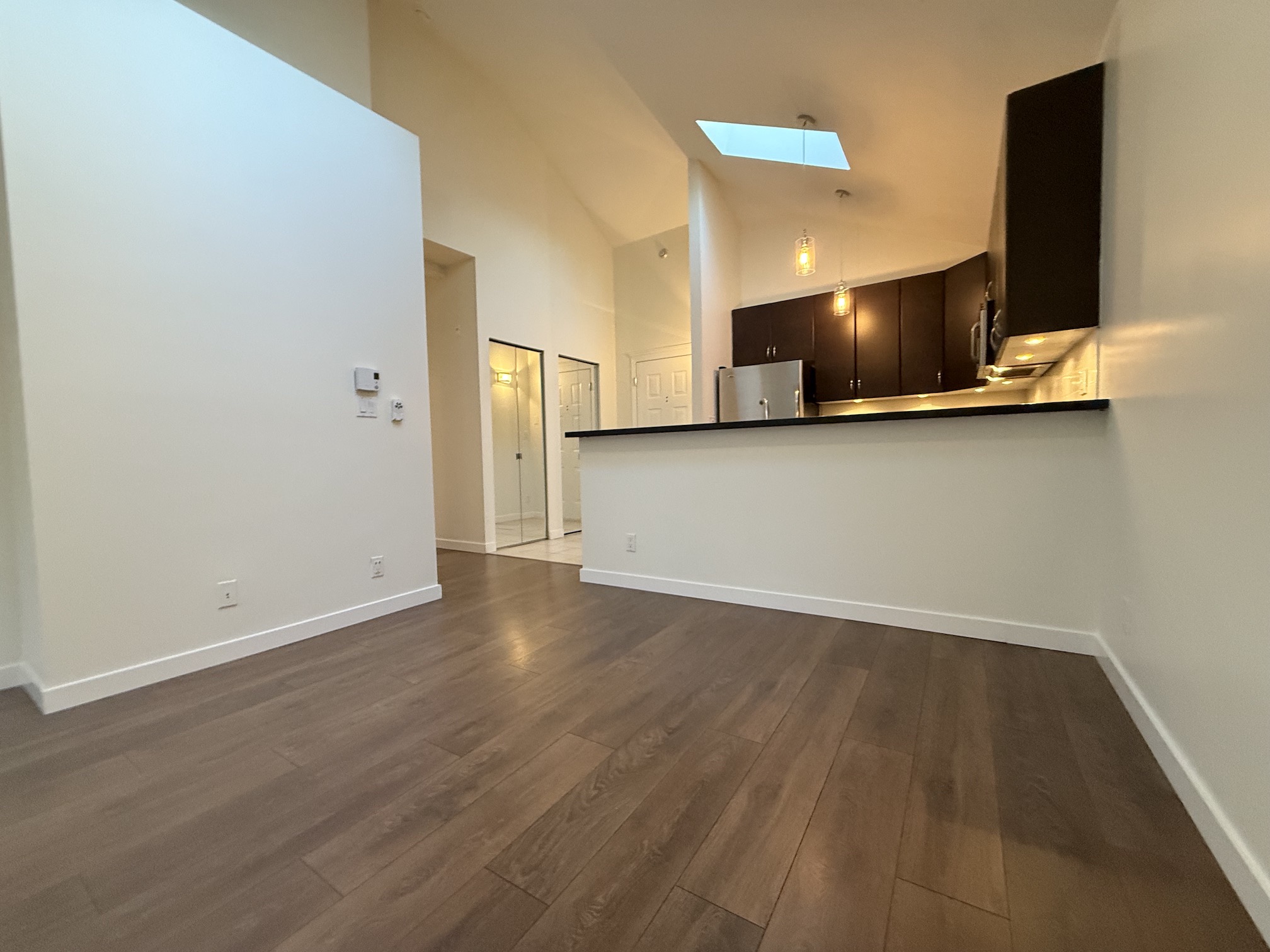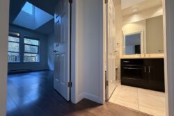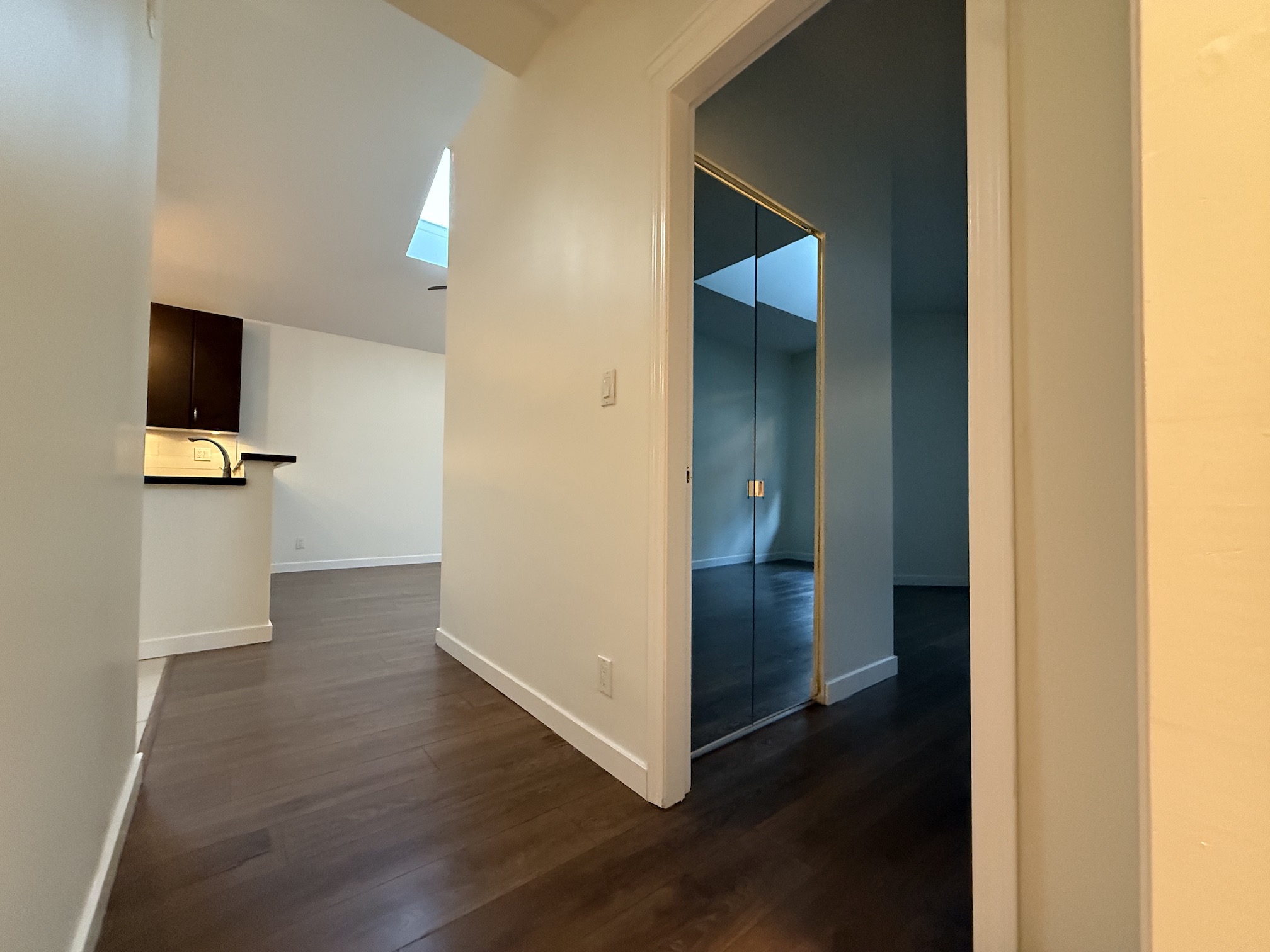 The Apartment is approx 790sqft, and is on the top (3rd) floor of the building, providing the added benefits of overheight vaulted ceilings and skylights in almost every room.