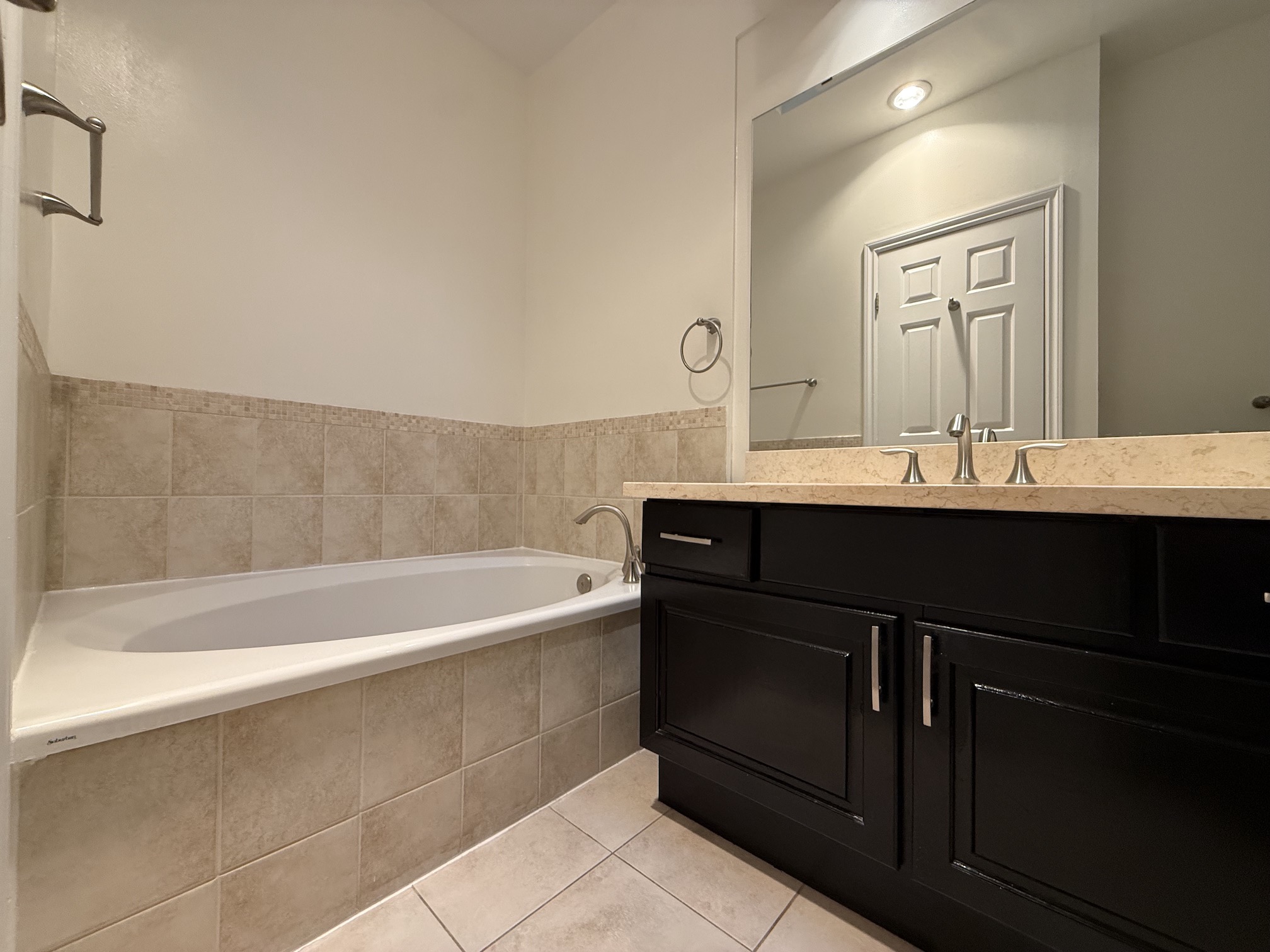 The Bathroom has both an oval soaker bathtub and a separate shower stall. A skylight in the bathroom also makes it a bright, more open feeling room.