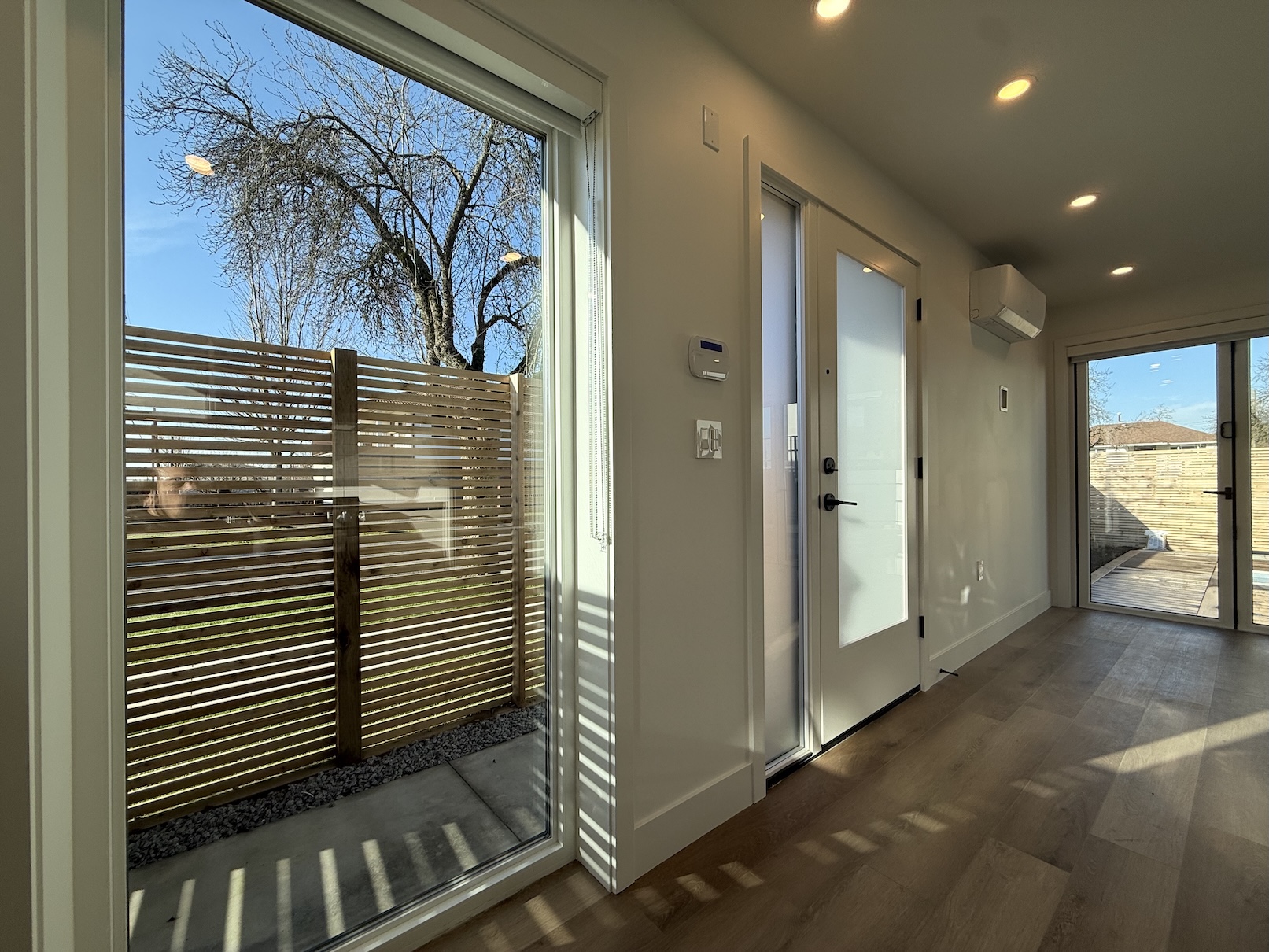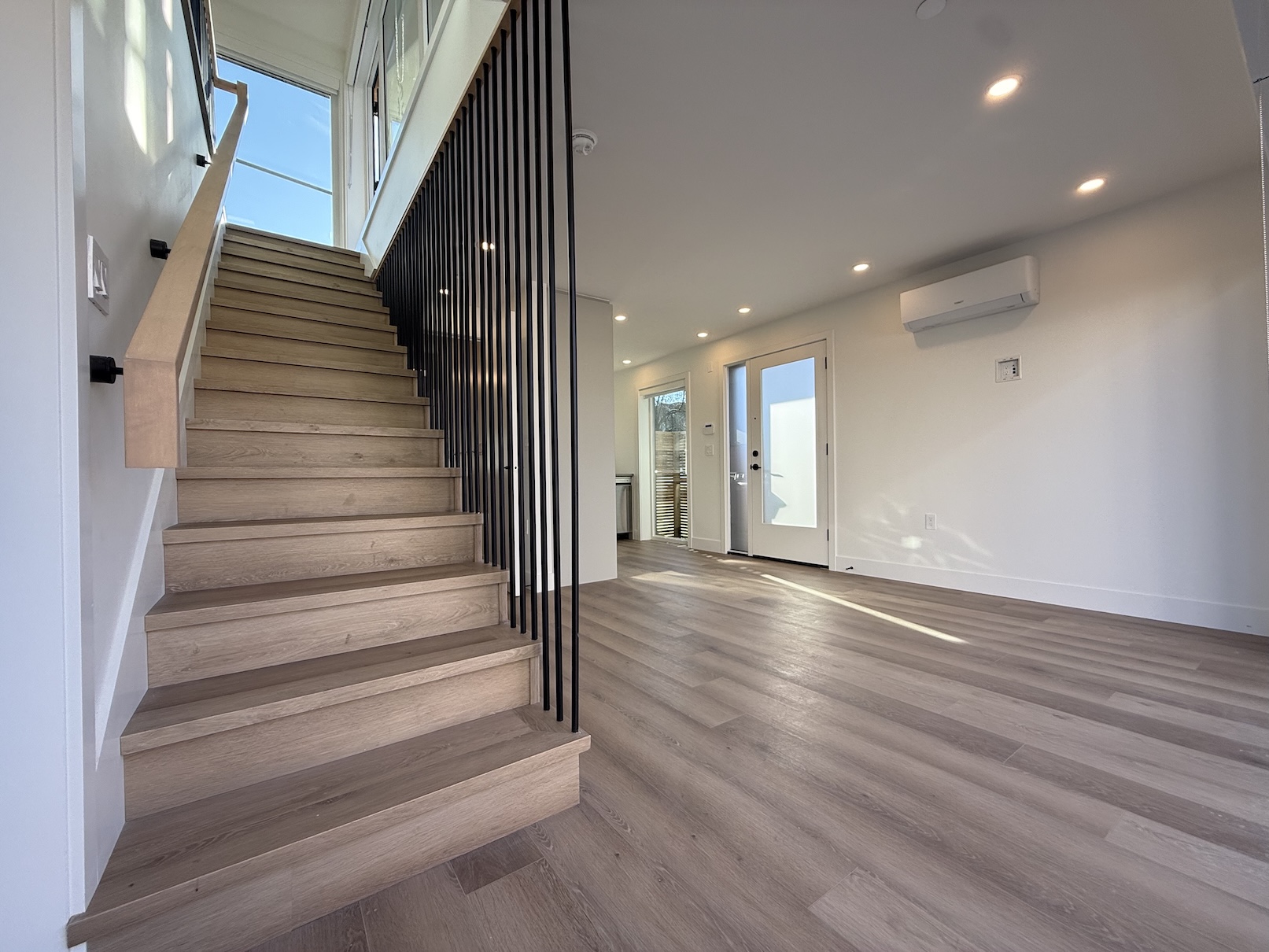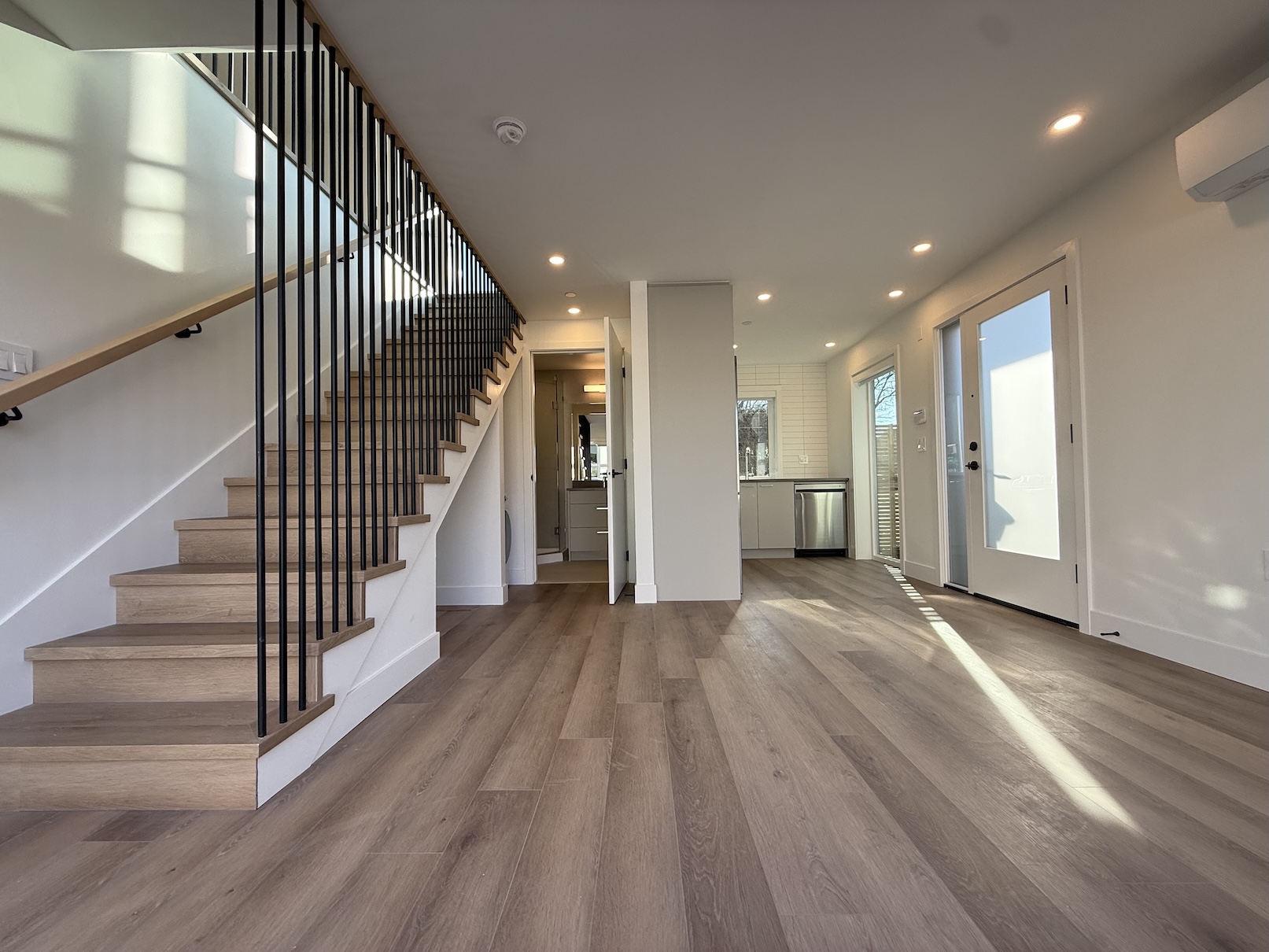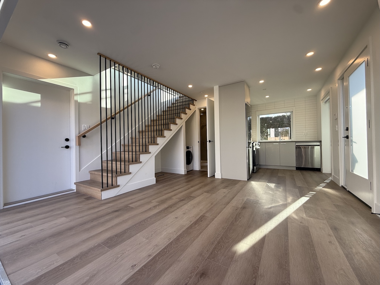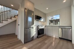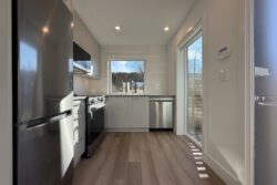 The main level includes the Living Room, the Kitchen, and 1 Full Bathroom. The Living Room currently has a set of glass patio doors leading to the back yard, however, a frosting is being added to the glass of these doors, and they will not be opening doors as the backyard space is for the exclusive use of the main house. The Laneway Home has a large outdoor patio space on the upper level.