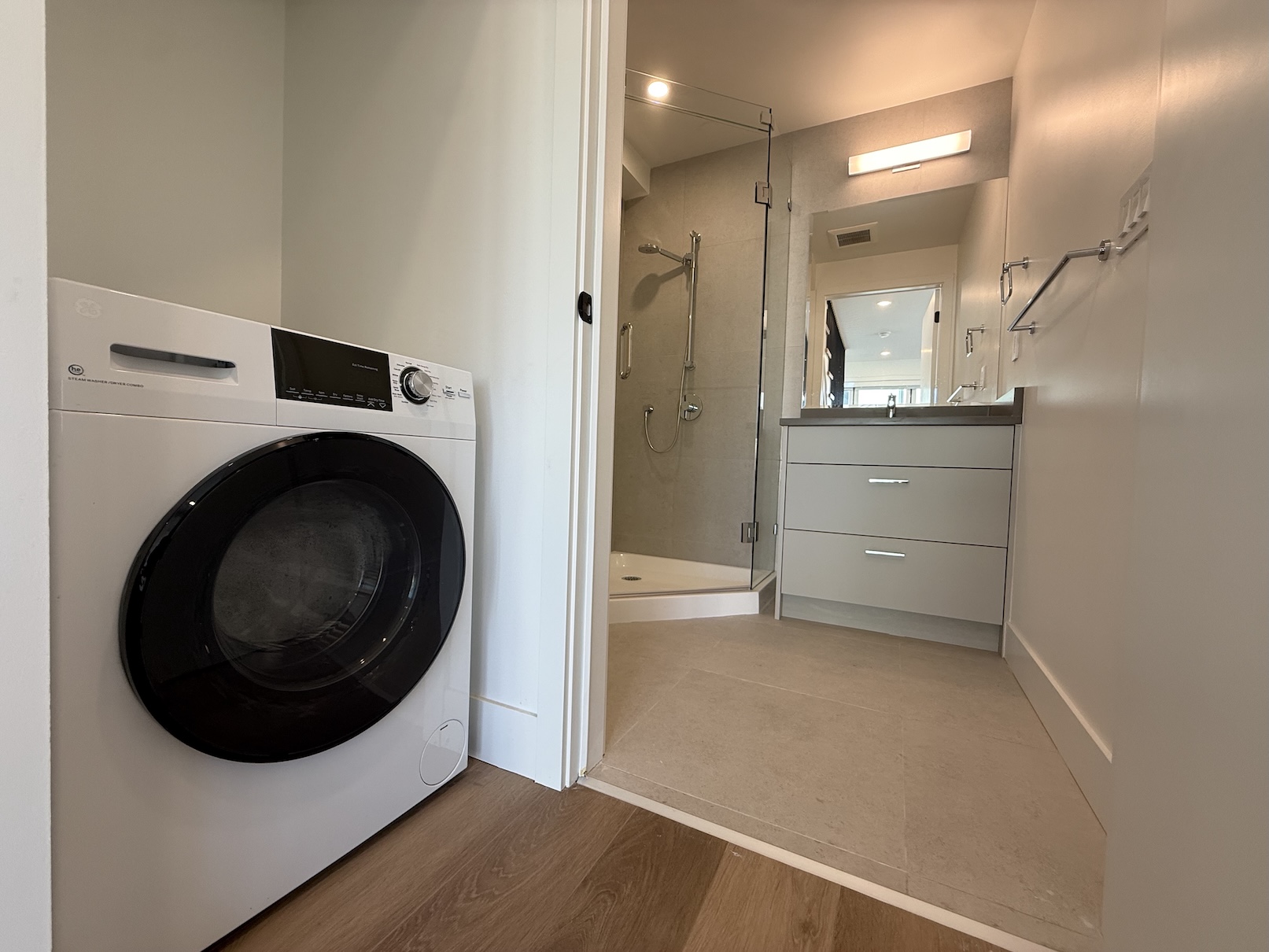 There is a combo washer/dryer located on the main level.