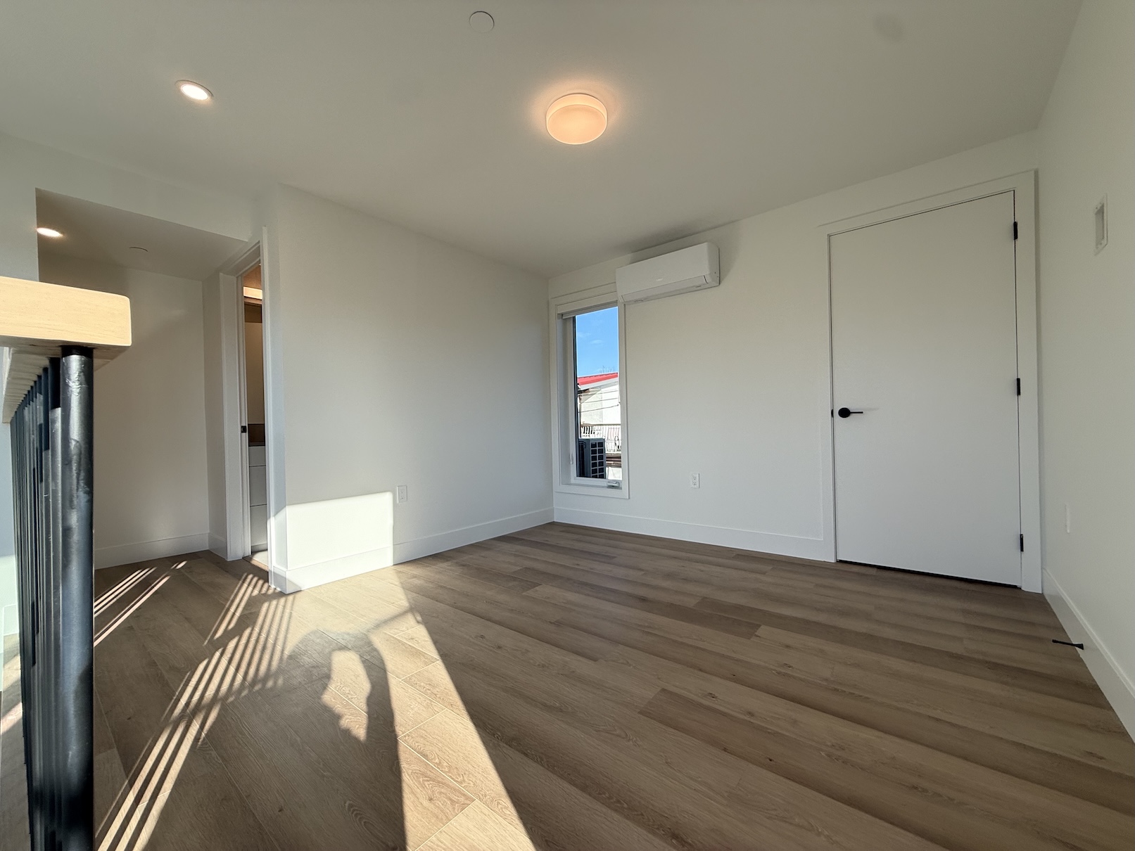 The upper level consists of the Bedroom and a Full Bathroom, as well as the patio. This is an open style bedroom as it is open to the stairwell. The Bathroom on this level includes a bathtub with shower head.