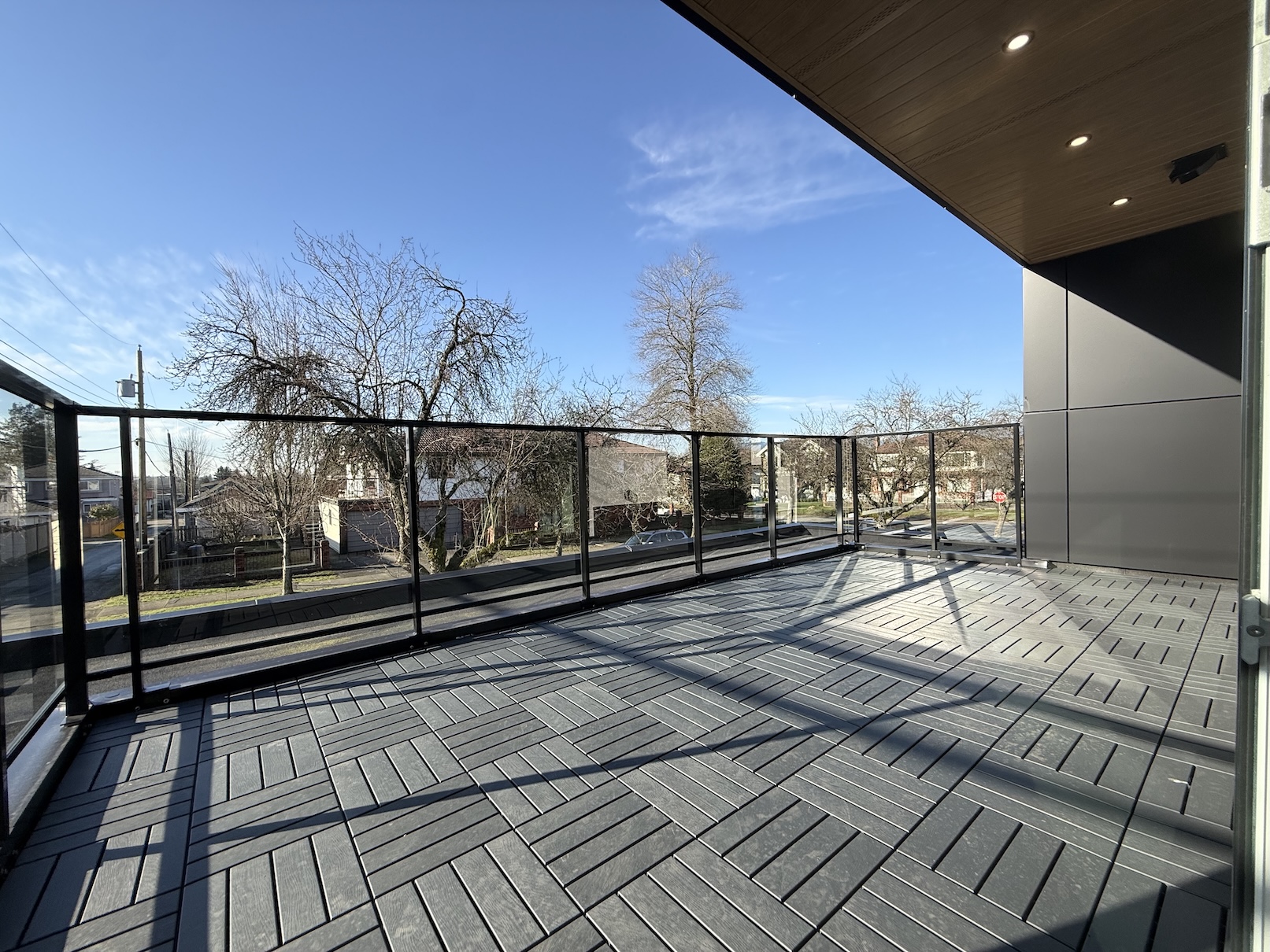 The Patio is approx 160sqft, with a sunny South West exposure and plenty of room for sun chairs and other patio furnishings. A propane bbq will be permitted on the patio. This is a peaceful residential area, so the patio is also a great place to unwind on summer evenings with a book and a glass of wine.