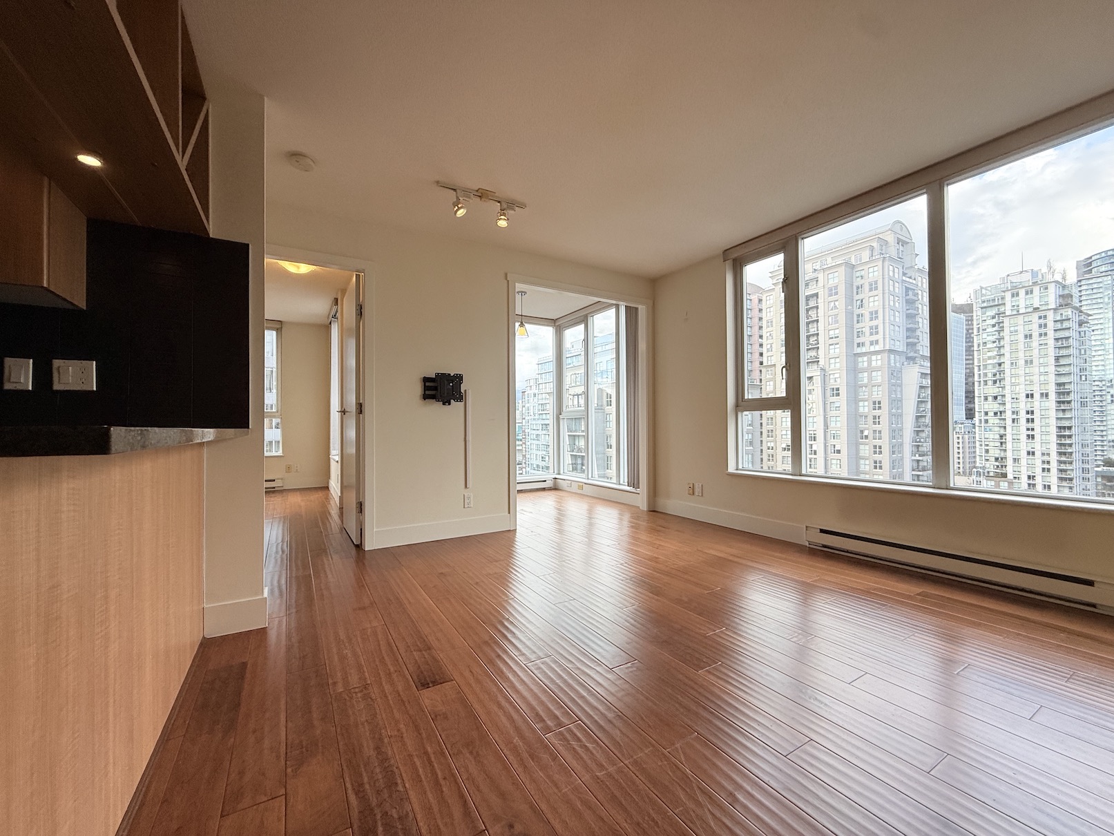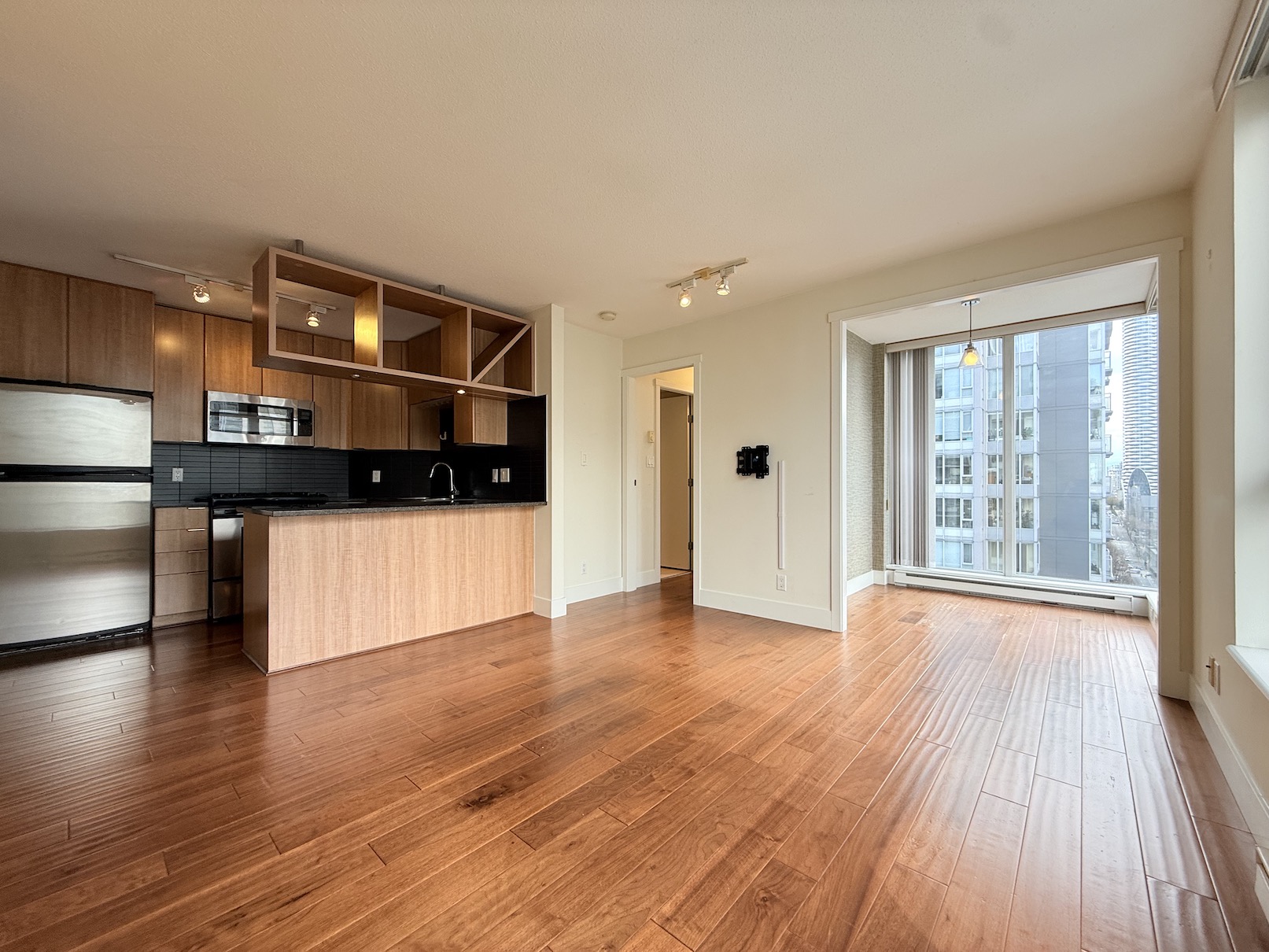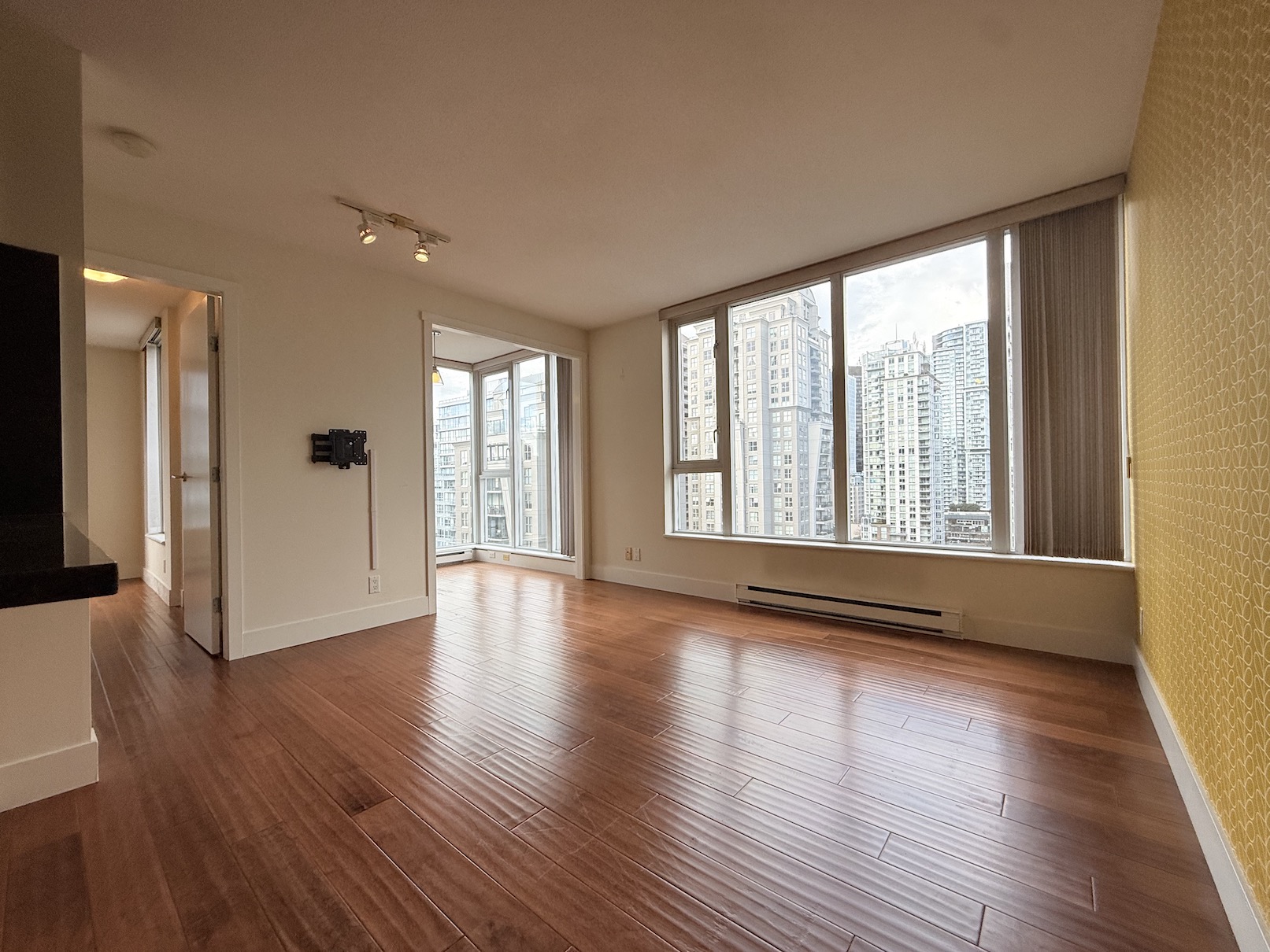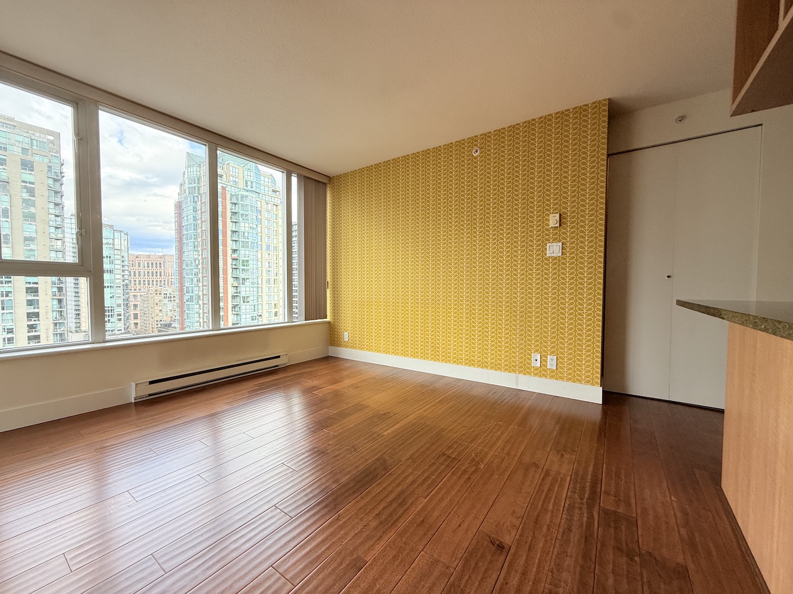 This 1 Bedroom + Den apartment is located in The Gallery at 1010 Richards Street, on the corner of Richards and Nelson. This prime location is just a short walk to the shops and restaurants of Yaletown, Robson Street, Davie Street and the Downtown Business District. The Yaletown Roundhouse Skytrain Station is about a 5 minute walk from the building.