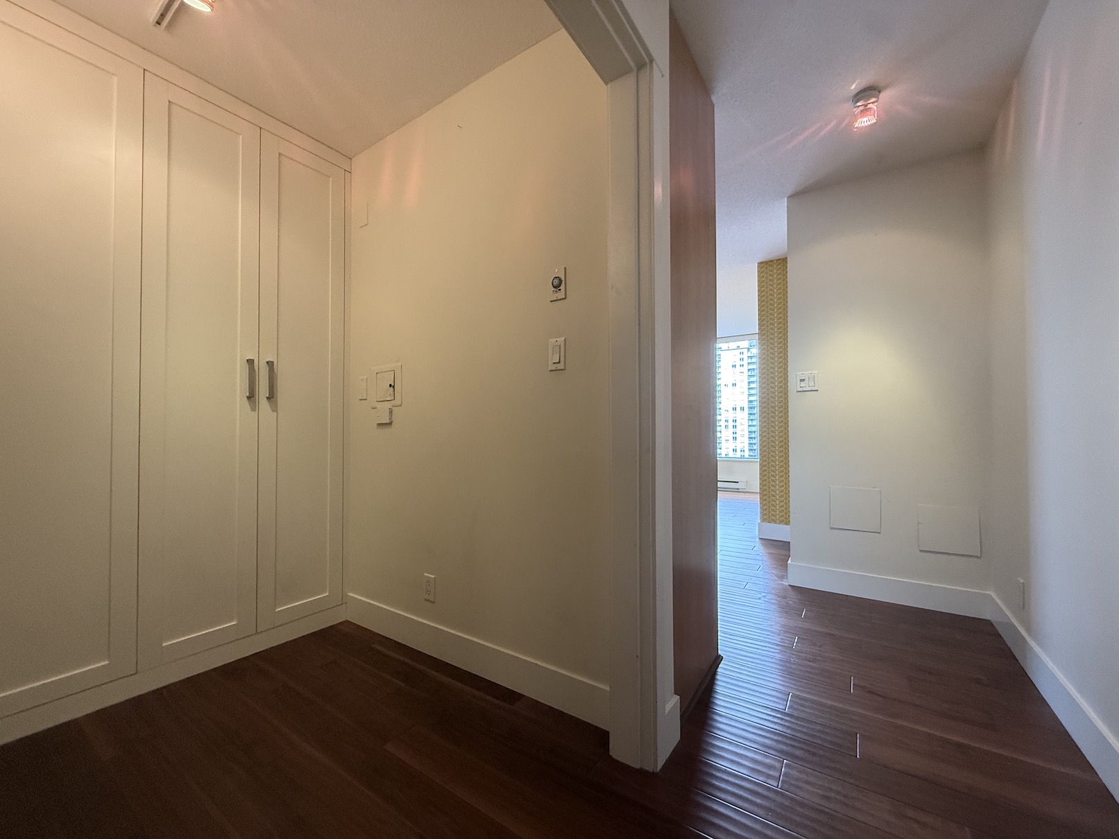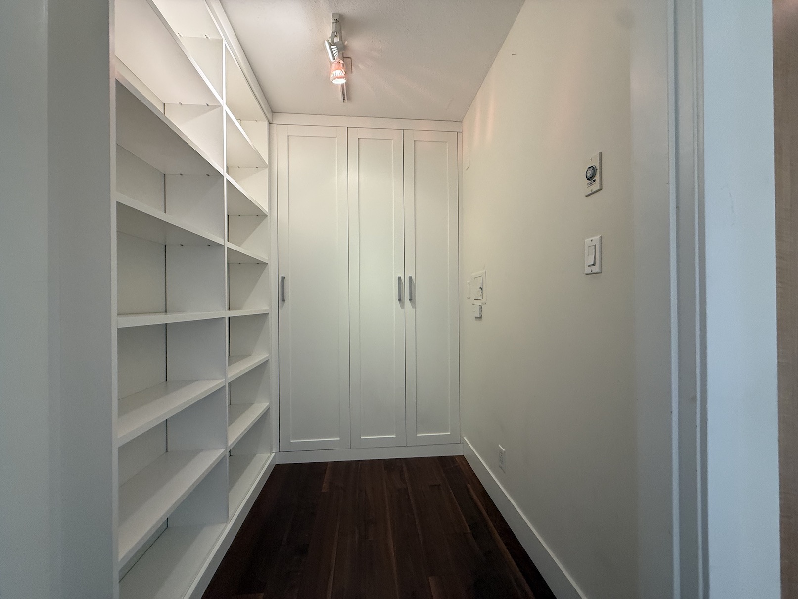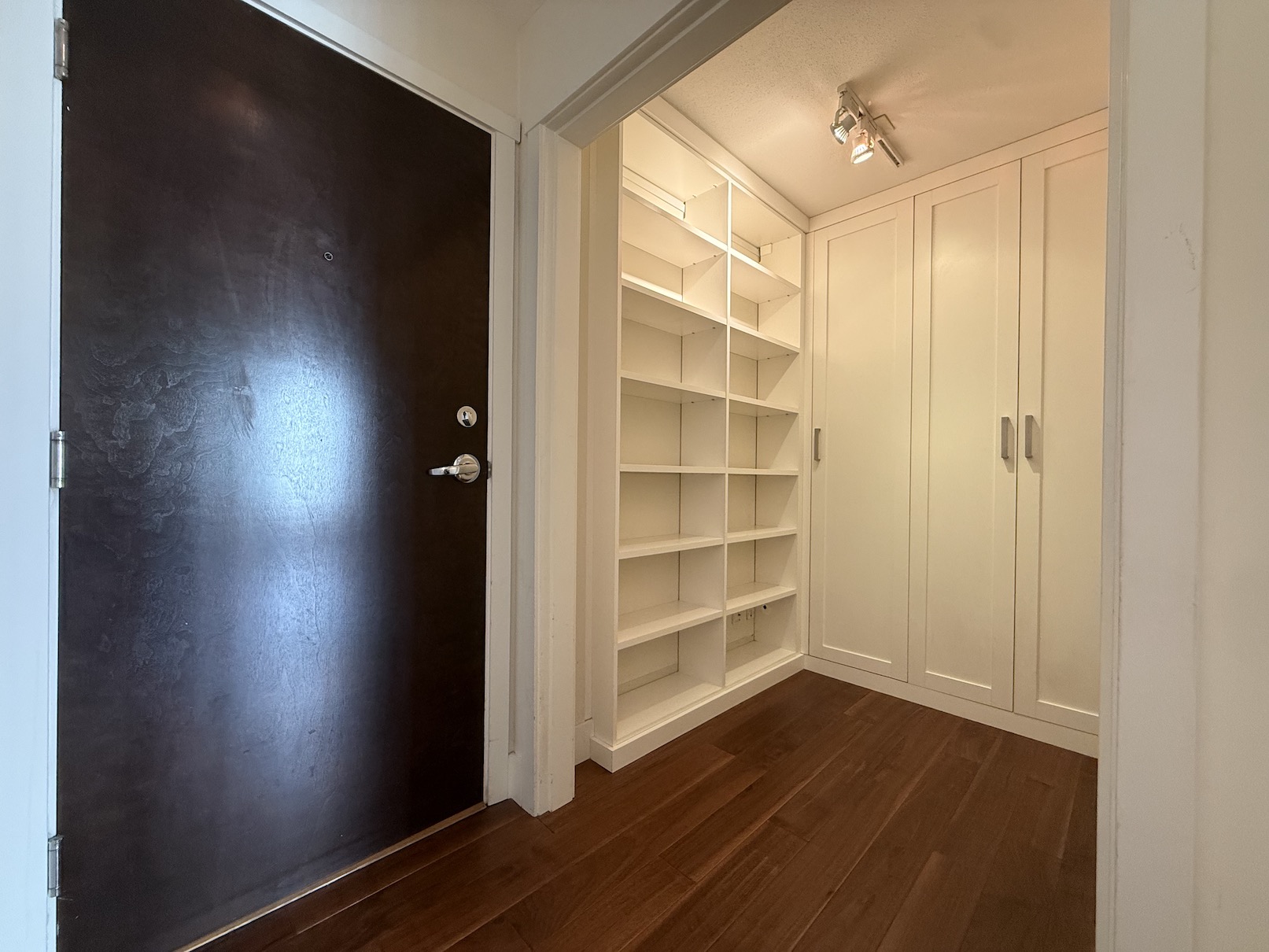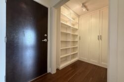 There is a large open foyer closet space with built in wardrobes for storage of jackets, shoes and other household items.