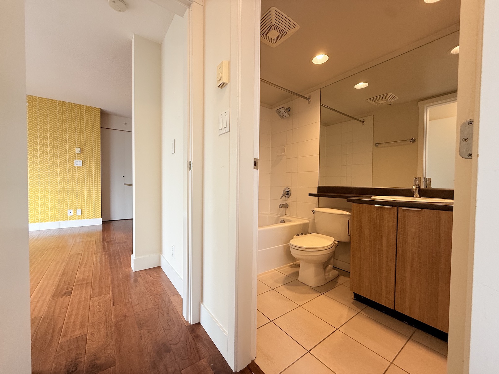 The apartment has a bright, open feel as it is a corner unit with windows on 2 walls.