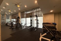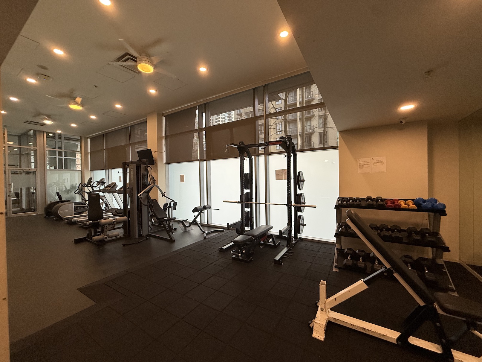 The building has a gym in addition to a social room with pool table.